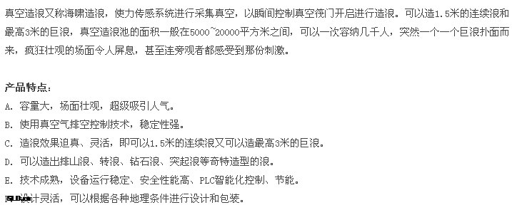 水上樂園設(shè)施您當(dāng)前的位置:網(wǎng)站首頁 > 產(chǎn)品展示 > 水上樂園設(shè)備 > 水上樂園設(shè)施>造浪池